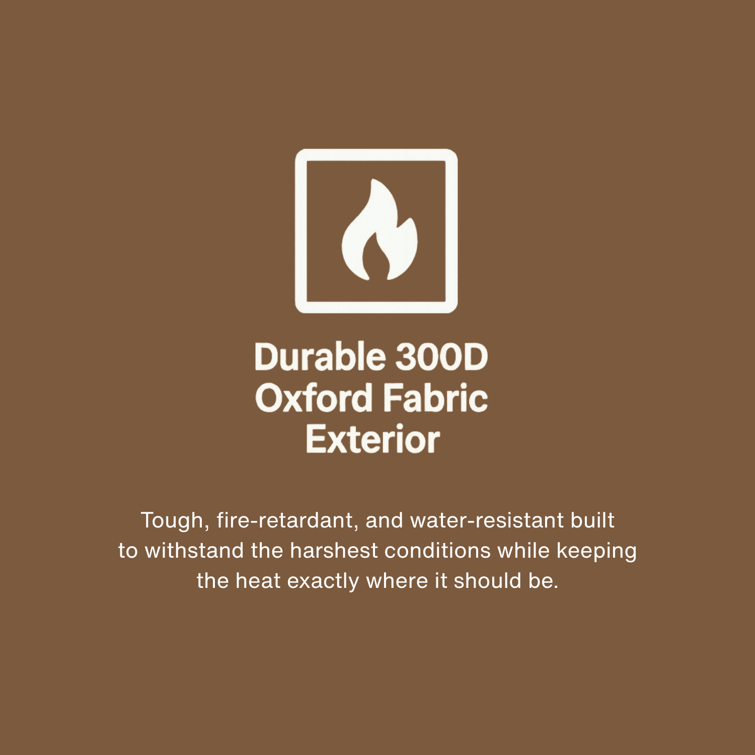 - Outer Material consists of an Oxford 300D outer layer, Insulation and an Oxford 300D inner layer.
